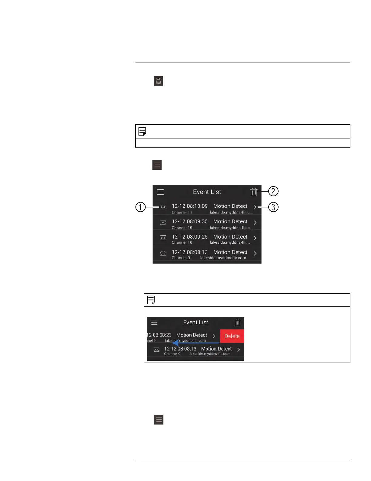 1. Events: Shows the details of each motion detection event. Tap the event to view the