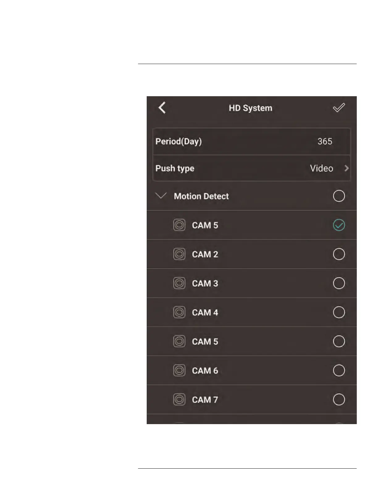 3. Tap Motion Detect and then check each channel you would like to receive push notifi-