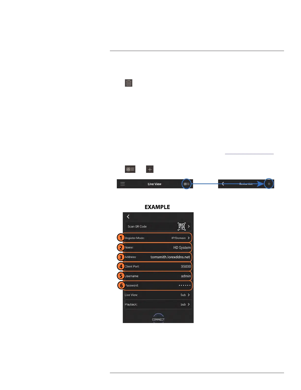 The app can connect directly to a device via the IP address or DDNS address as an op-