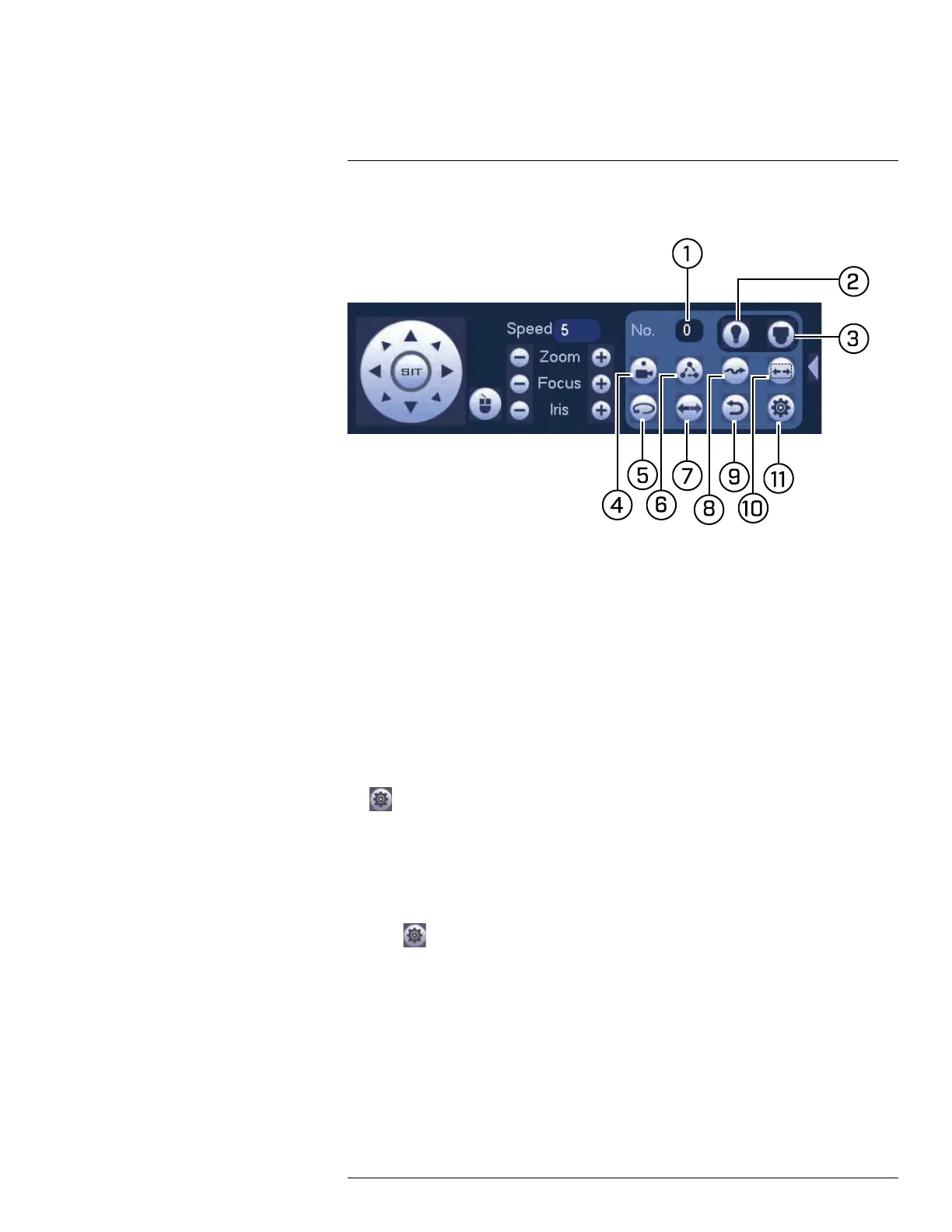 3. PTZ camera menu: Click to open the camera’s OSD menu. This may not be sup-