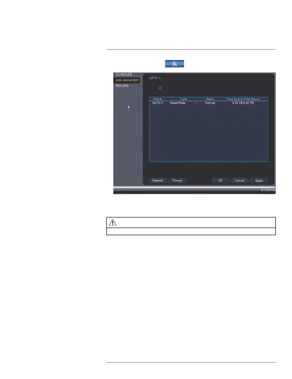 1. From the Main Menu, click and then click Storage > HDD Manager.