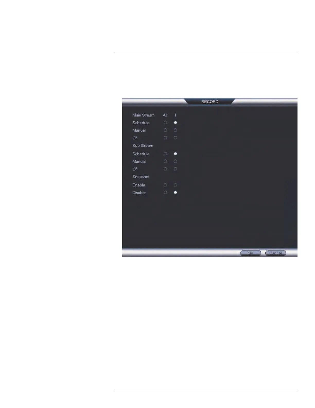 • Manual: The system will record the Sub Stream continuously as long as this option