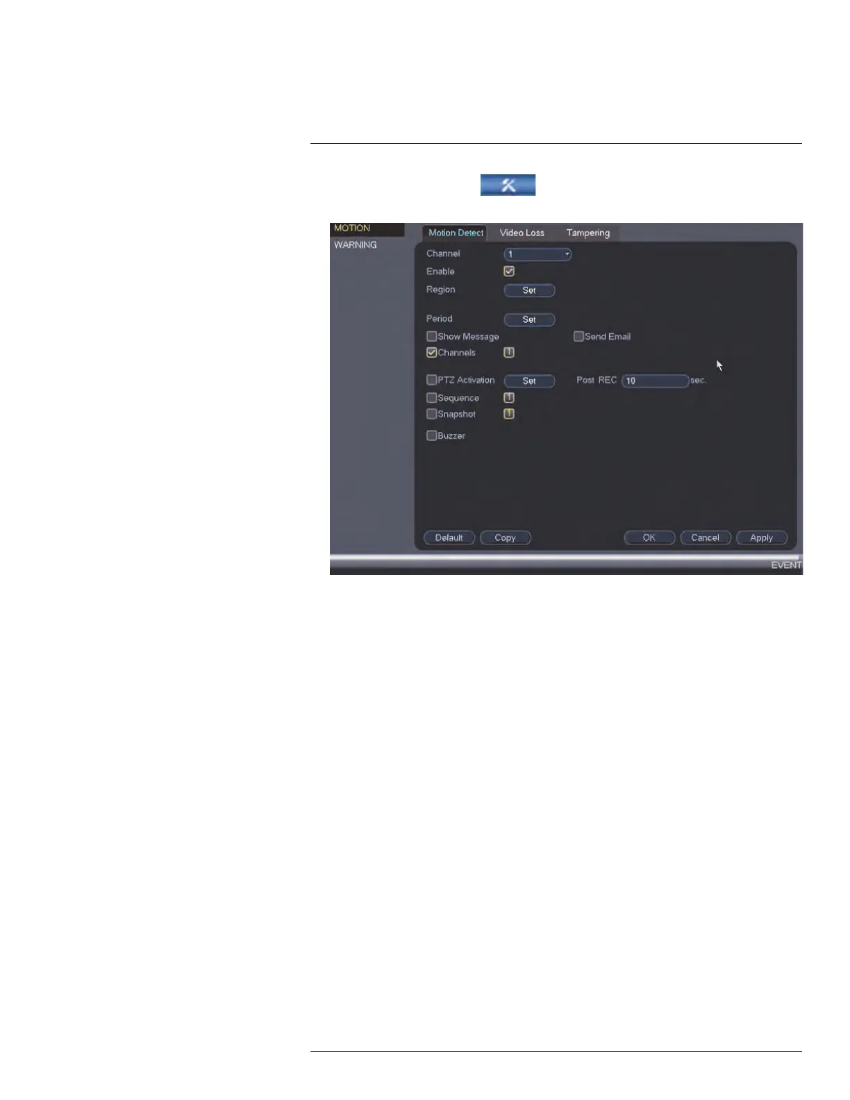 3. Check Enable to enable motion detection on the selected channel.