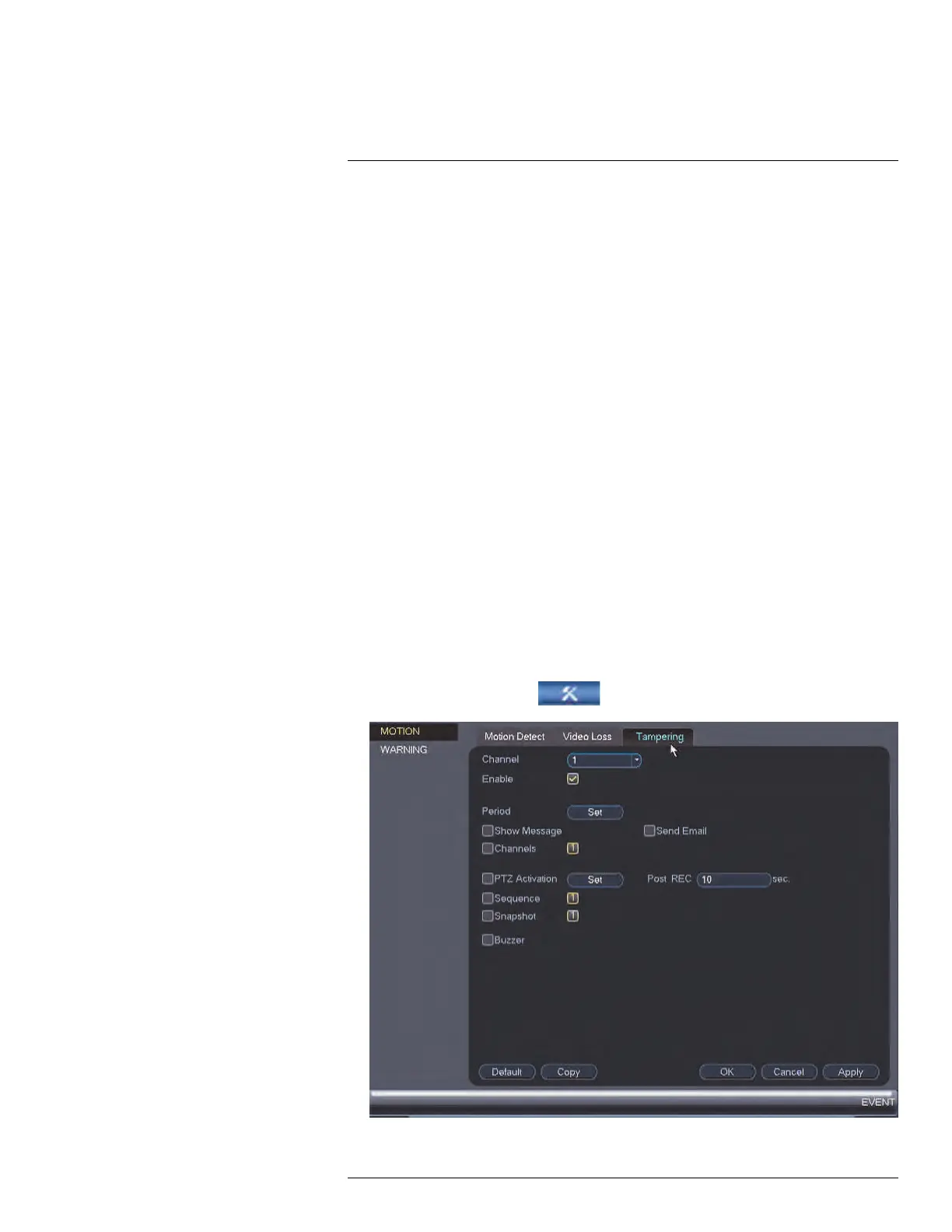Allows you to set up your camera to detect video tamper, and trigger alerts.