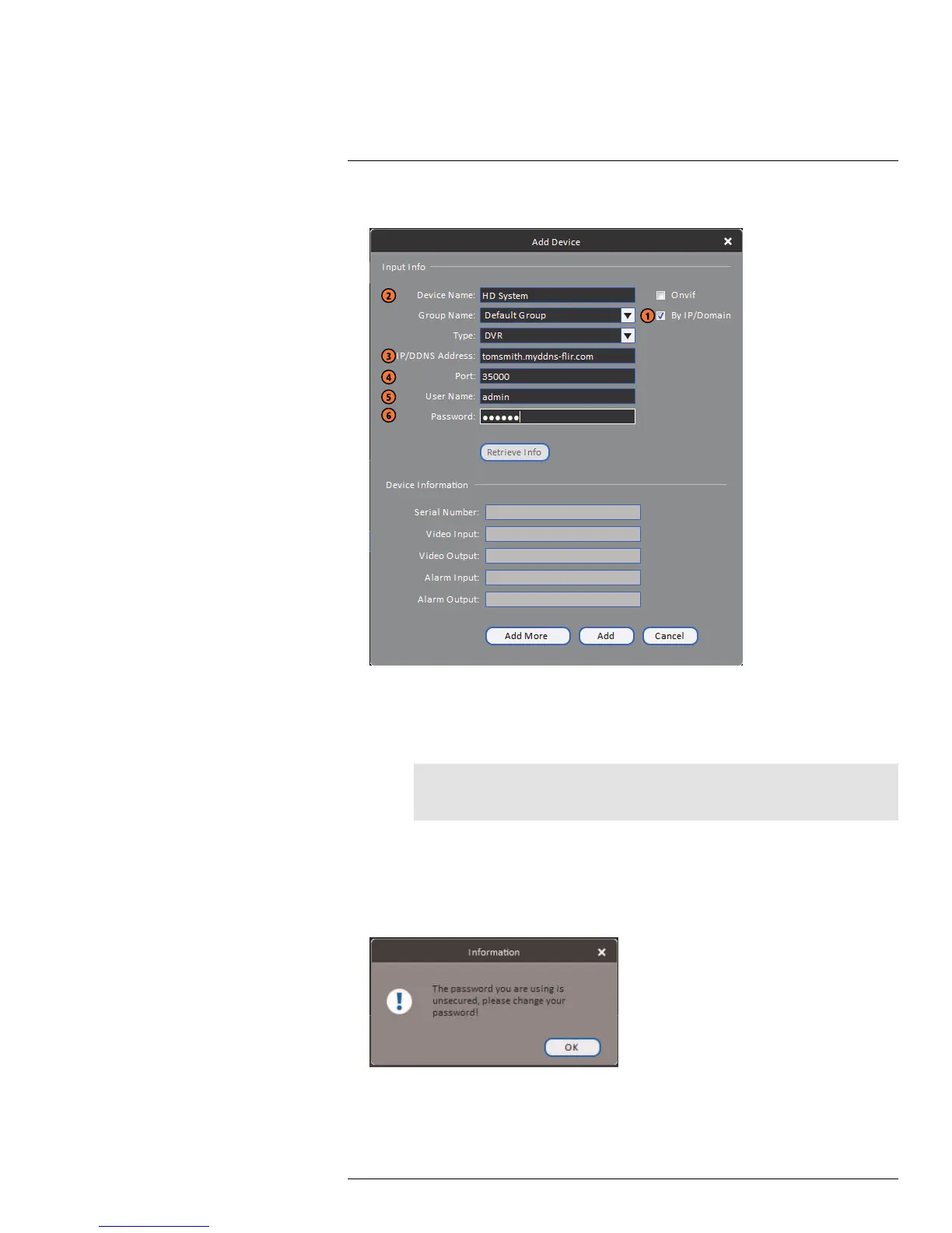 For example, if your Domain Name/URL Request is tomsmith, enter tomsmith.myddns-flir.