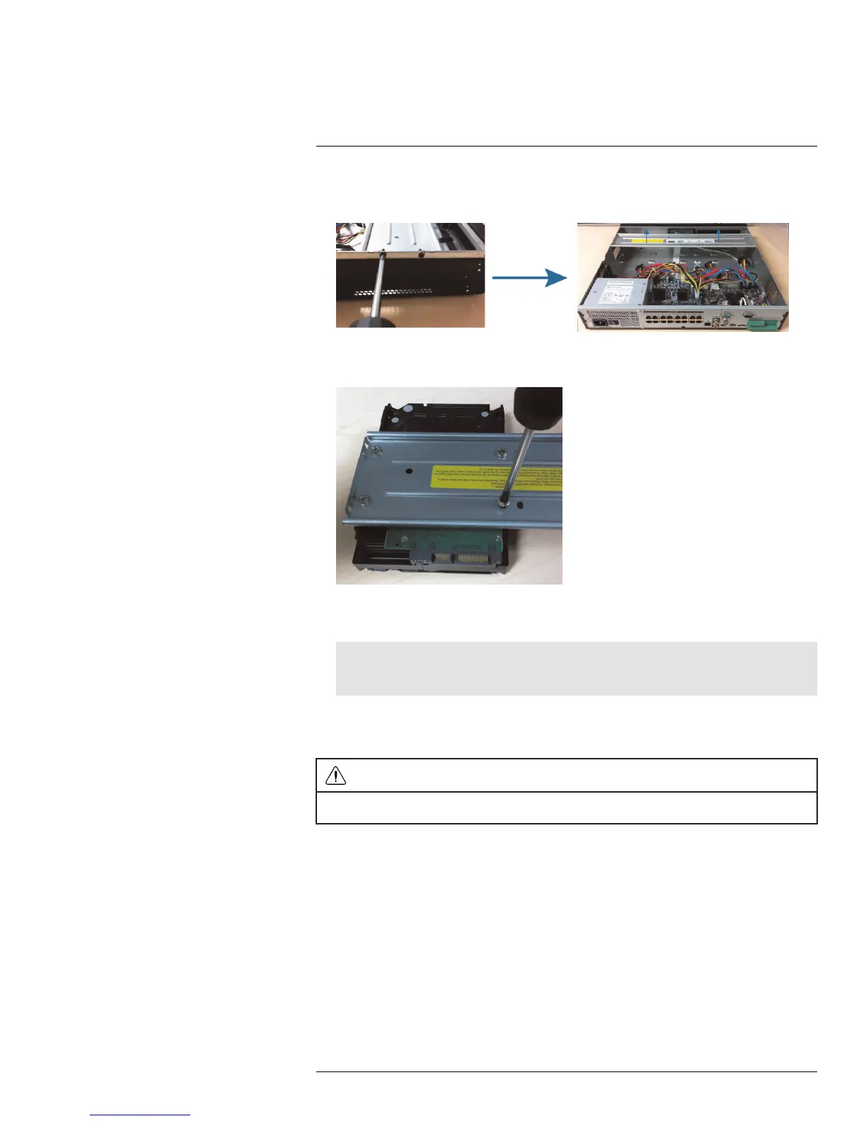6. Replace the hard drive bracket and hard drive bracket screws (4x). Replace the top