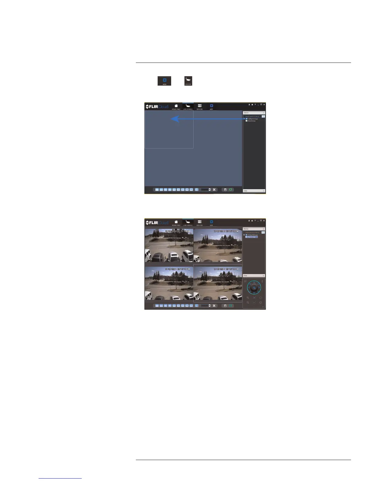 9. Click and drag Default Group to the display window to open your cameras in live view.