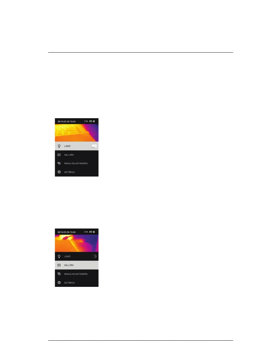• GALLERY: Press MENU to access the stored images. Use the arrow but-