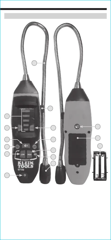 3. Cabeza del sensor 11. Botón HIGH Sensitivity