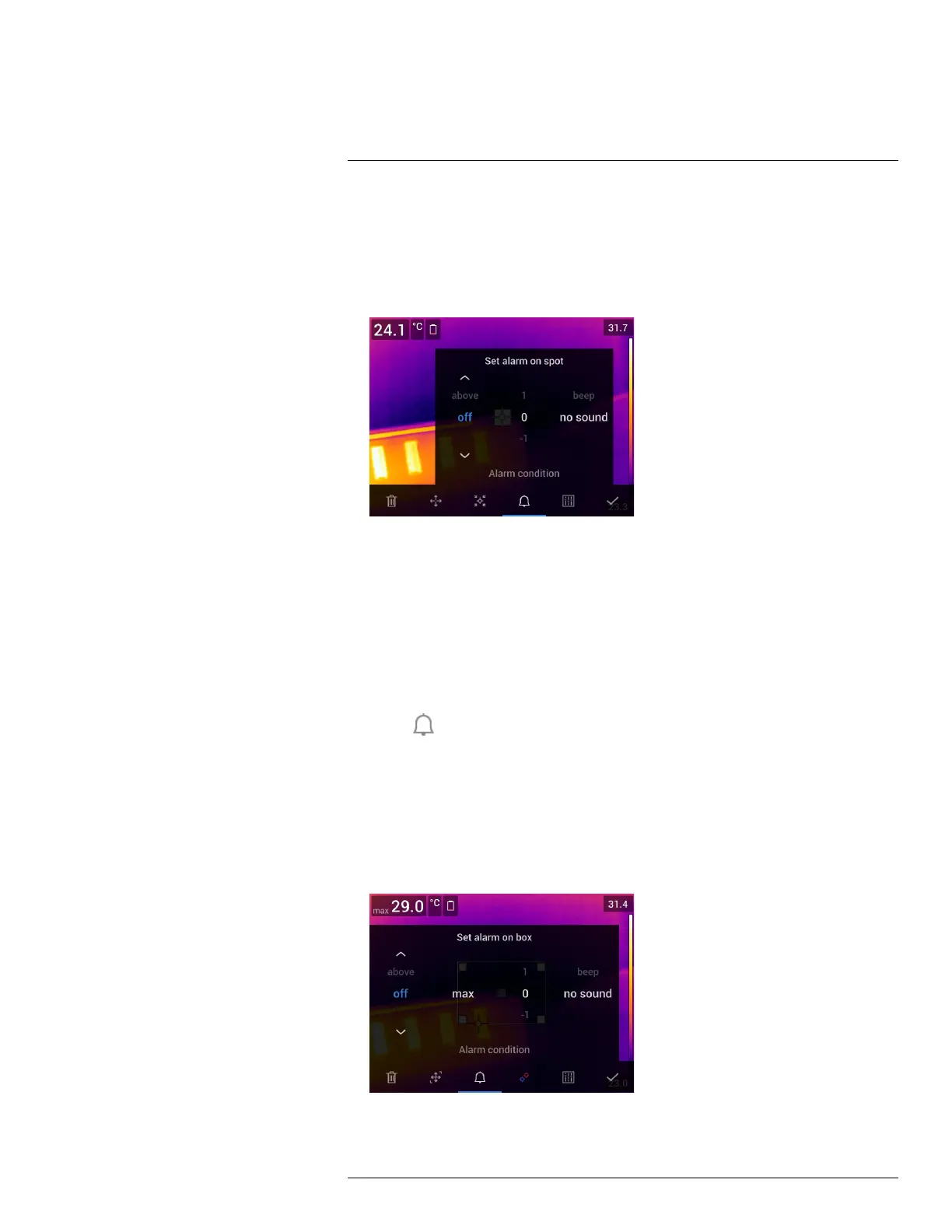 • Alarm limit: The temperature value that will be the critical condition when an alarm is