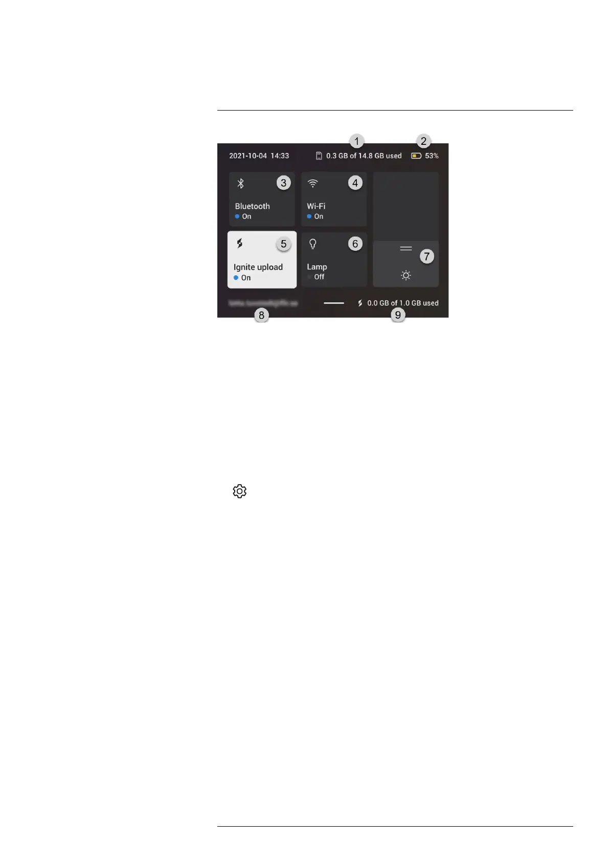 5. Ignite upload button: Touch to enable/disable automatic upload of images and videos.