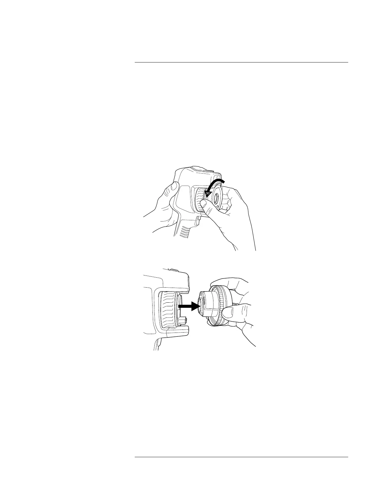 1. Take a firm grip around the inner ring of the lens. Rotate the inner ring 30° counter-