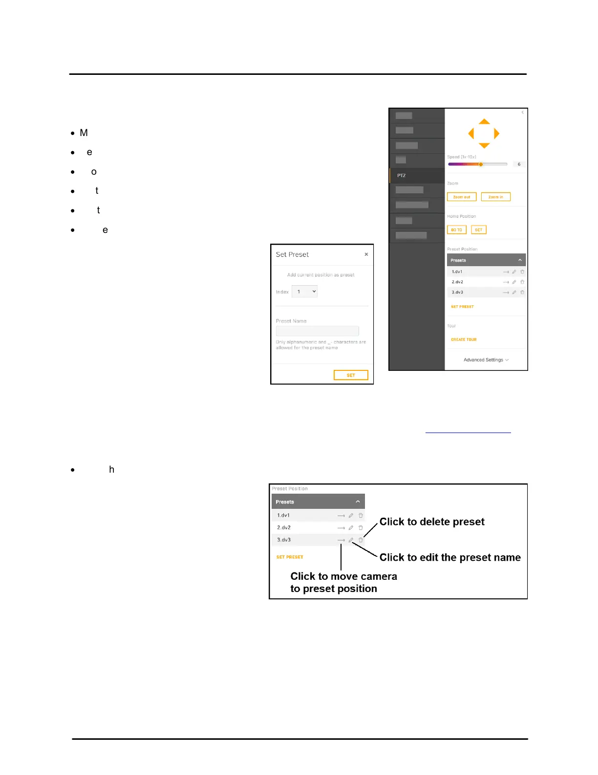 Move the camera to a preset position, edit a preset name, or delete a preset: