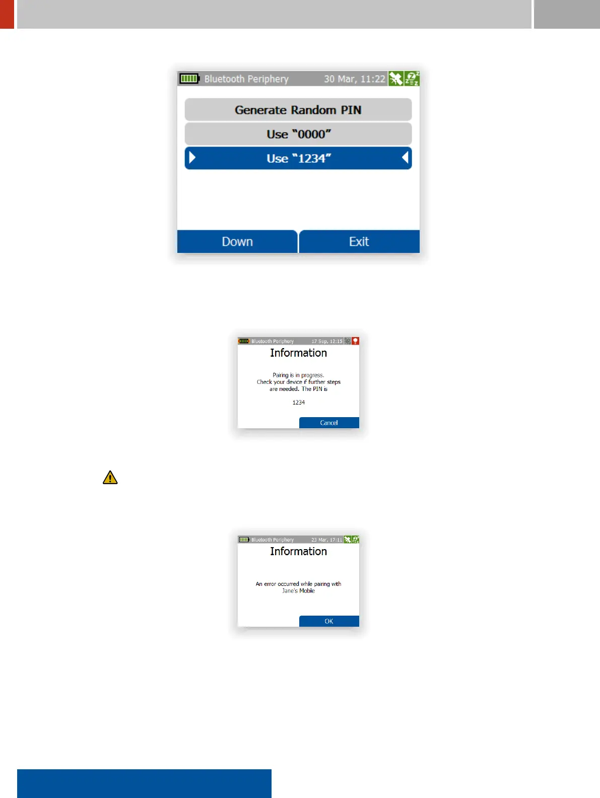 If pairing fails then an error message (Figure 233, p. 226) will be displayed. Make sure