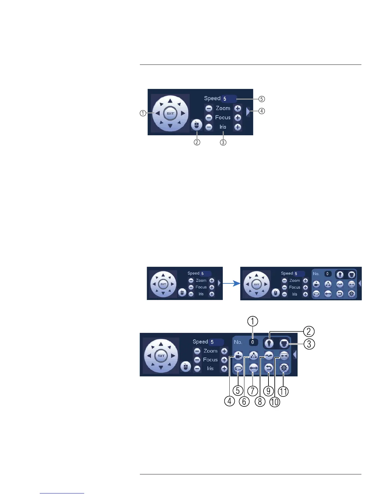 3. PTZ camera menu: Click to open the camera’s OSD menu. This may not be sup-
