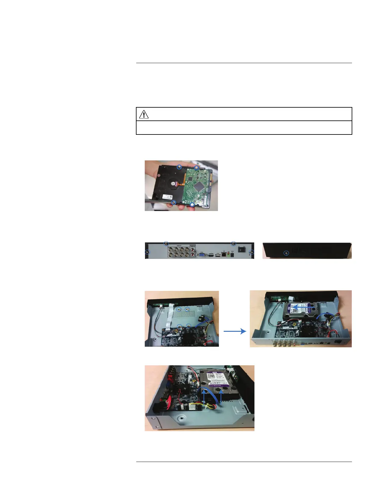 1. Insert hard drive screws (4x) on the hard drive and tighten them half way.