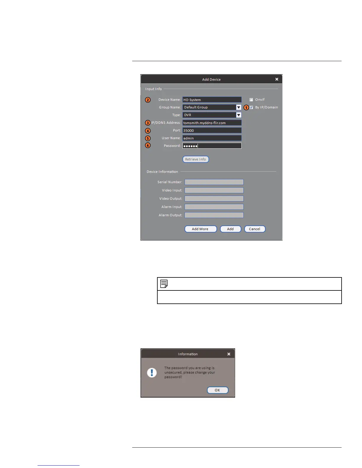 For example, if your Domain Name/URL Request is tomsmith, enter tomsmith.myddns-flir.