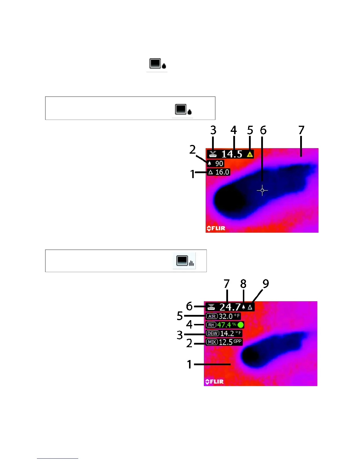 There are three modes where moisture readings are displayed; refer to Figs. 5-1 (a) through (c)