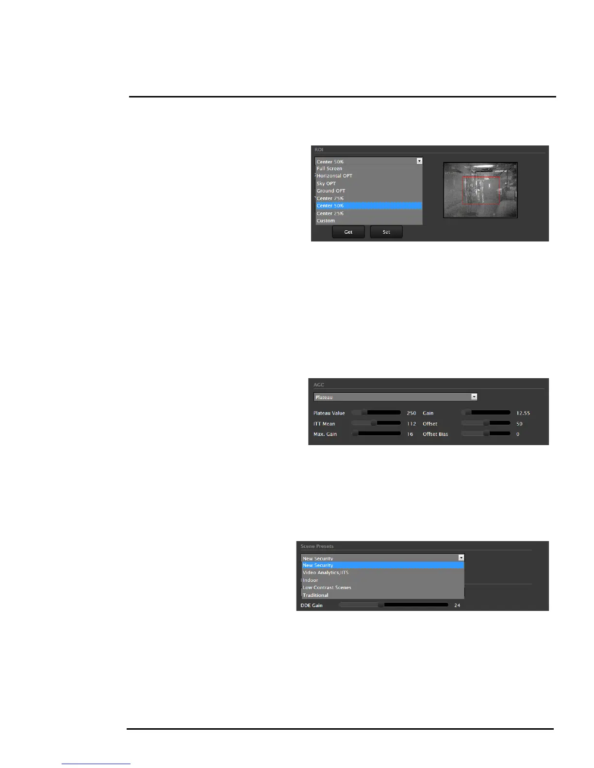 The AGC parameters affect how the overall video image appears. The default Plateau algorithm is