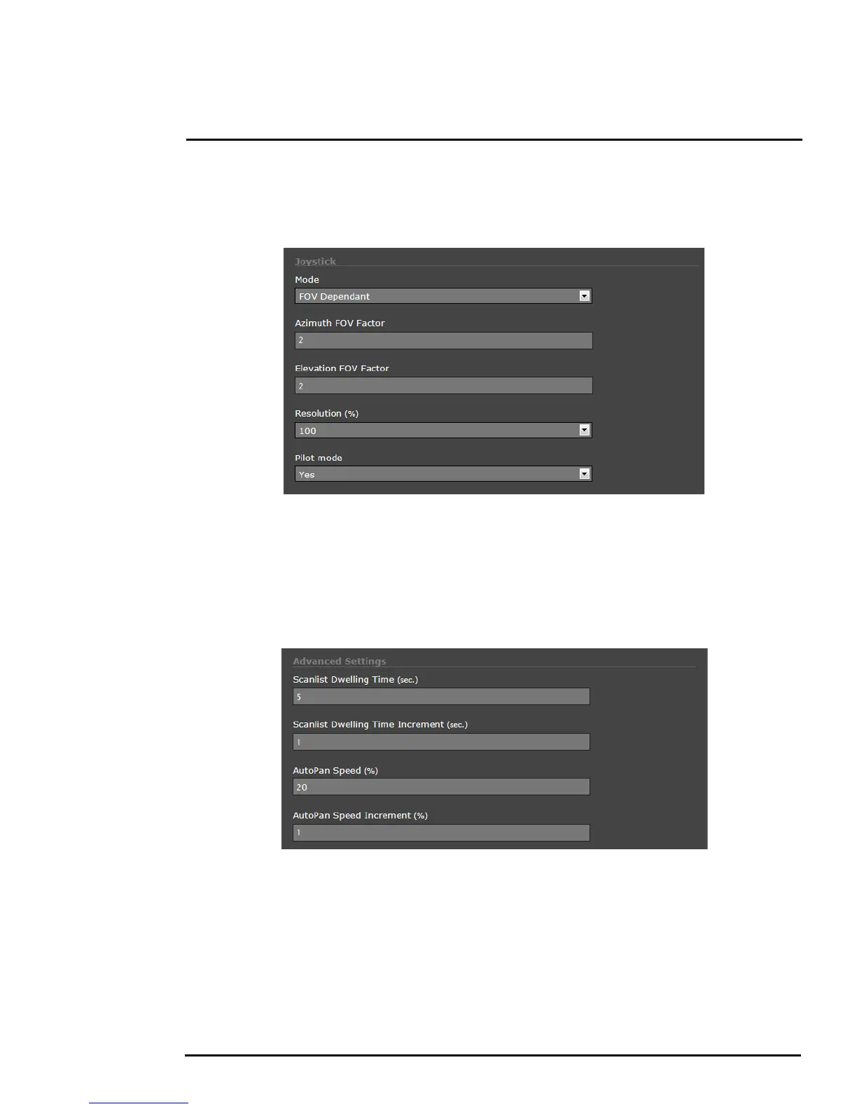 The parameters in the Advanced Settings are related to pan/tilt camera features including Scan Lists
