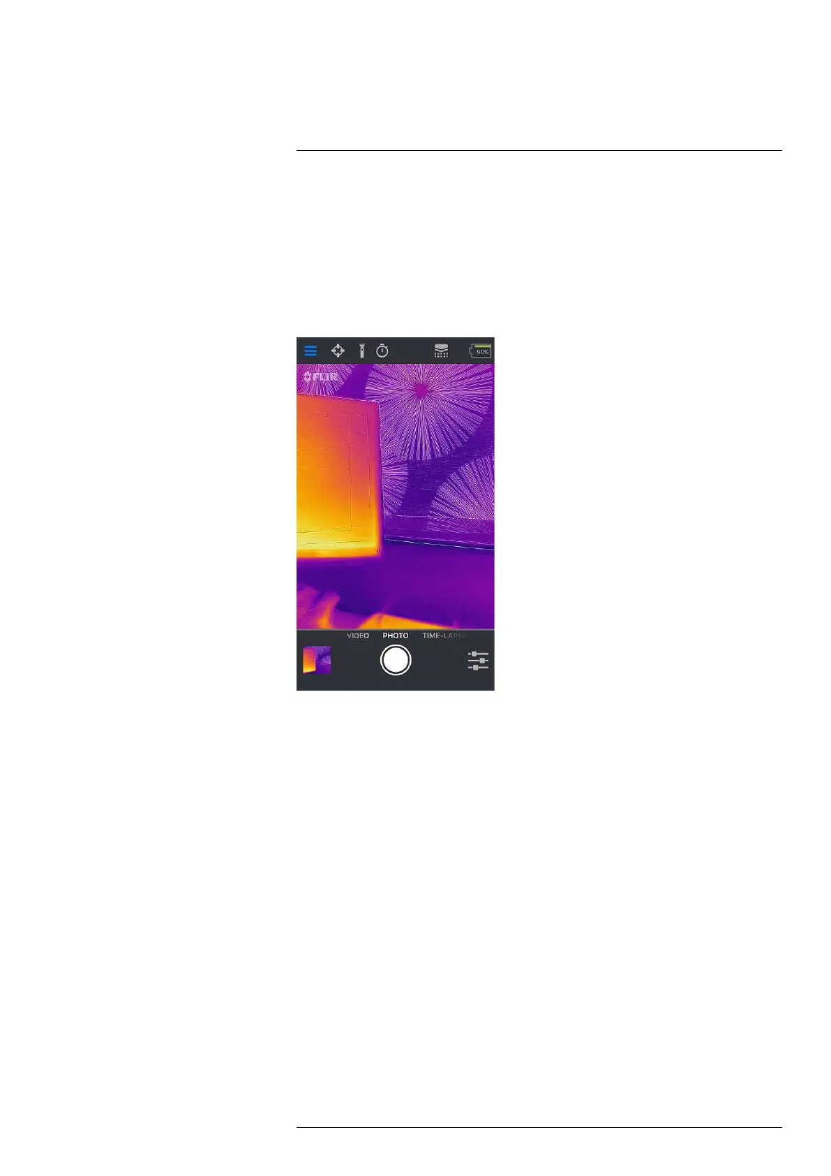 At the bottom of the screen there is a black bar with icons for the FLIR ONE Gallery,