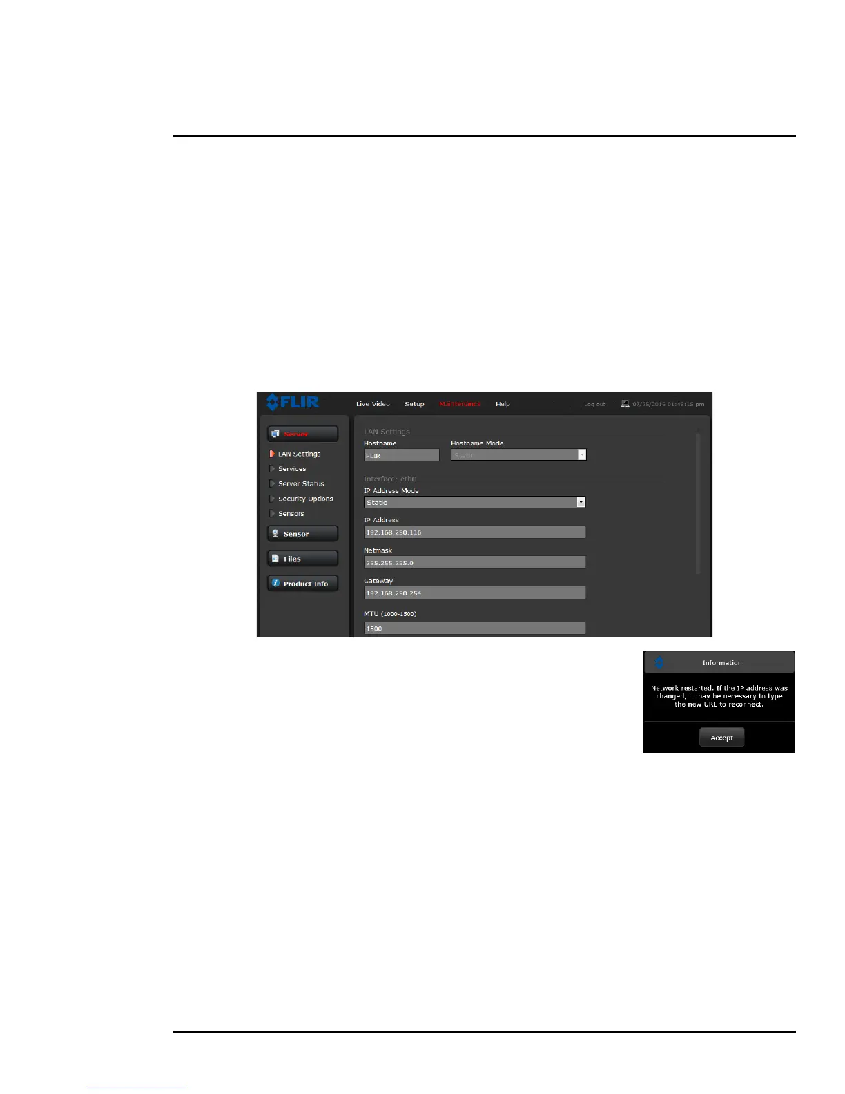 left side of the page.The LAN Settings, Date and Time, Server Status, and Security Options