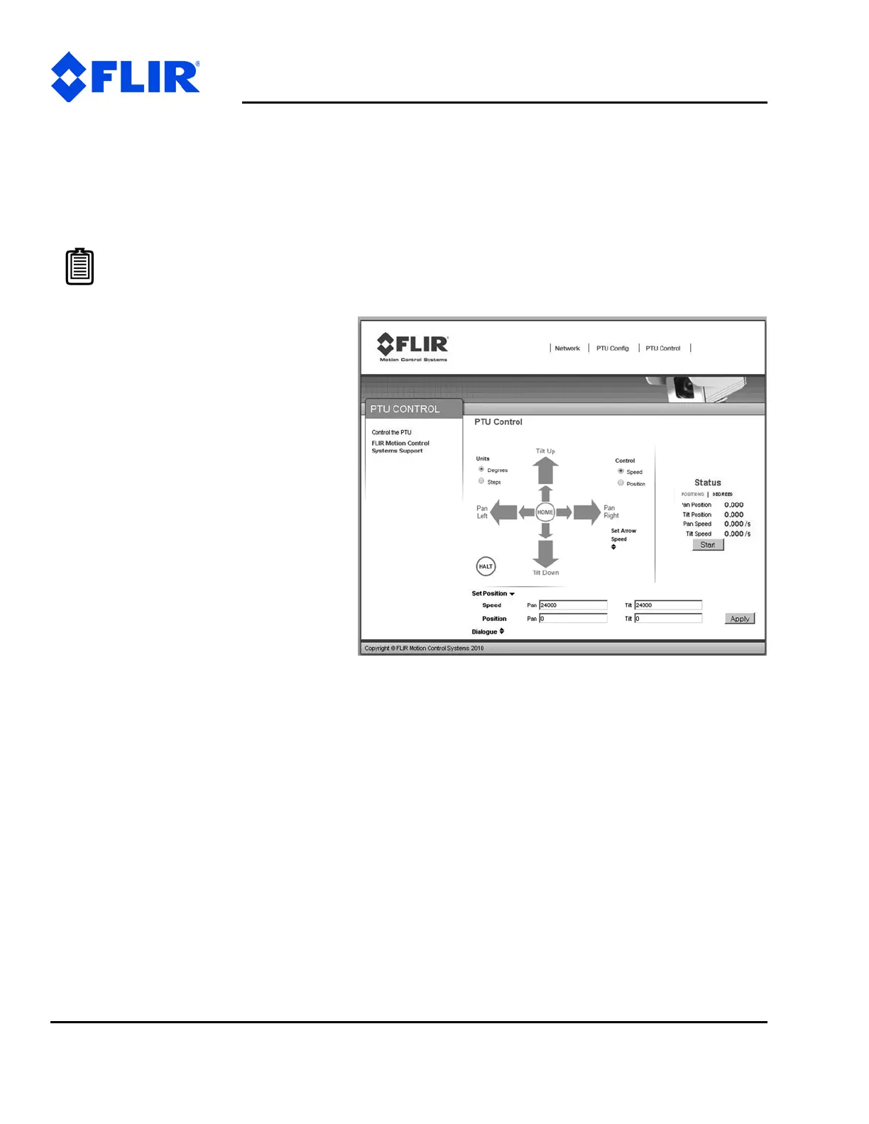 9. Click the arrows to pan and tilt the PTU