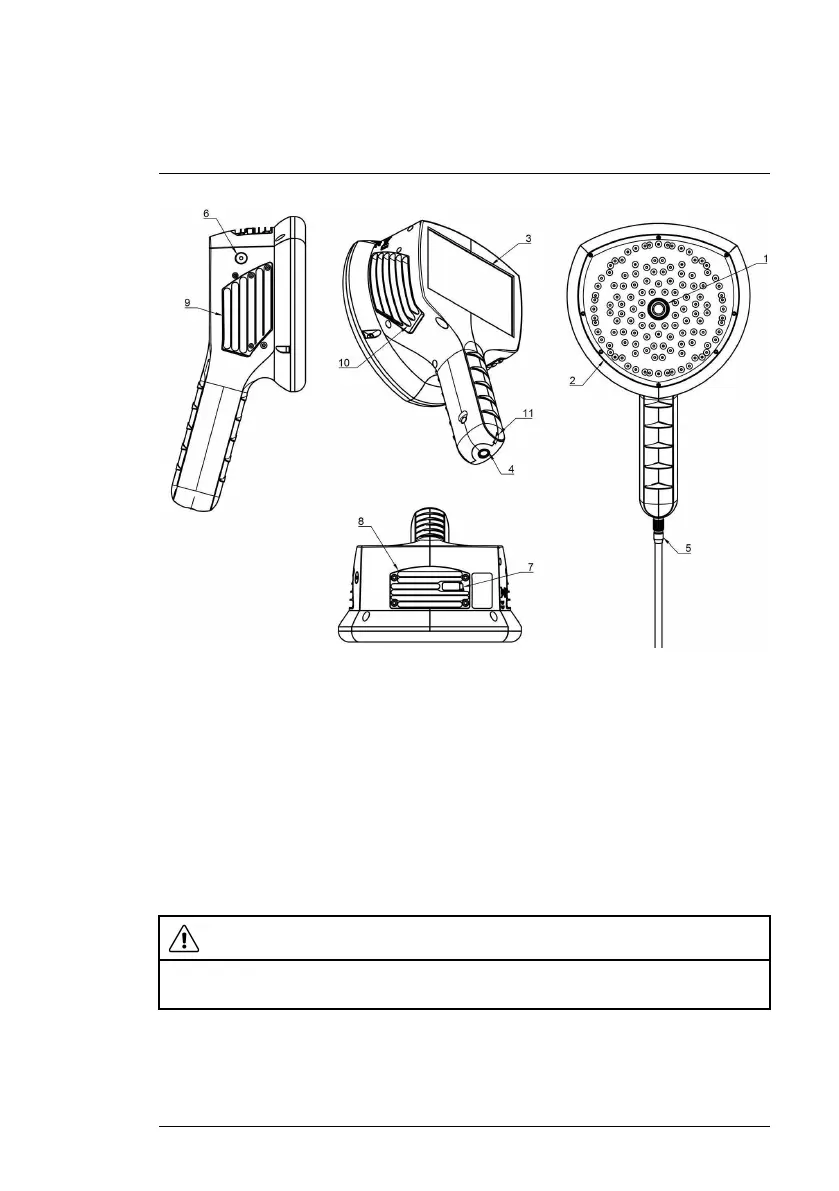 Do not touch the heatsinks when the camera is powered on. The three heatsinks (8, 9,