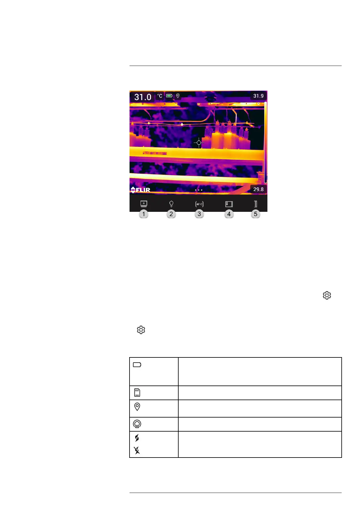 5. Temperature scale button: Touch to switch between the automatic and manual image
