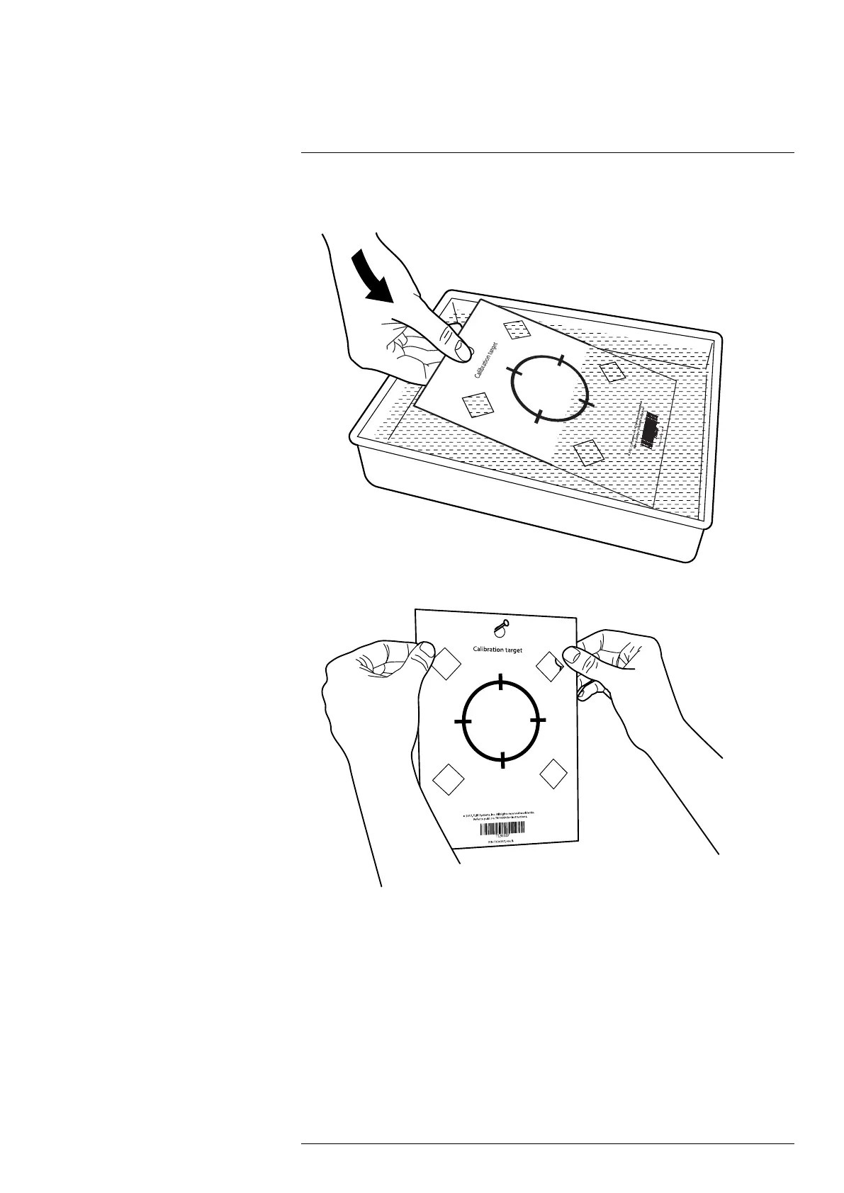 1. Dip the calibration target in water for 1 second and let the excess drip off.