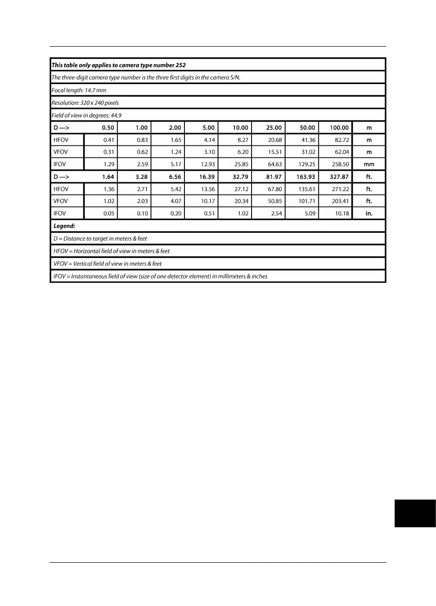 Figure 14.7 Horizontal, vertical and instantaneous fields of view for certain distances to targets. 14.7 mm