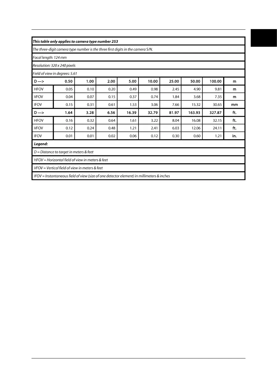 Figure 16.11 Horizontal, vertical and instantaneous fields of view for certain distances to targets. 124 mm