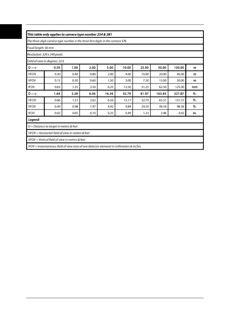 Figure 16.16 Horizontal, vertical and instantaneous fields of view for certain distances to targets. 36 mm