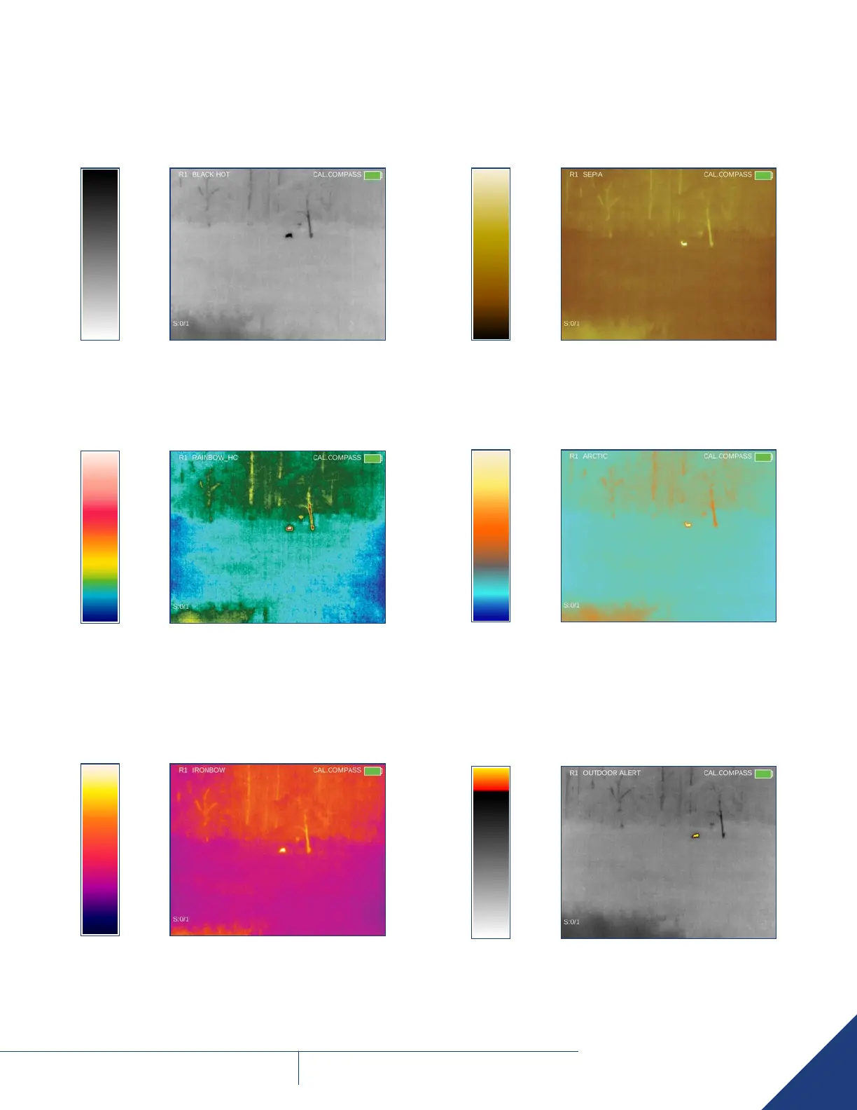 The Sepia is a thermal palette of three colors. It displays the heat