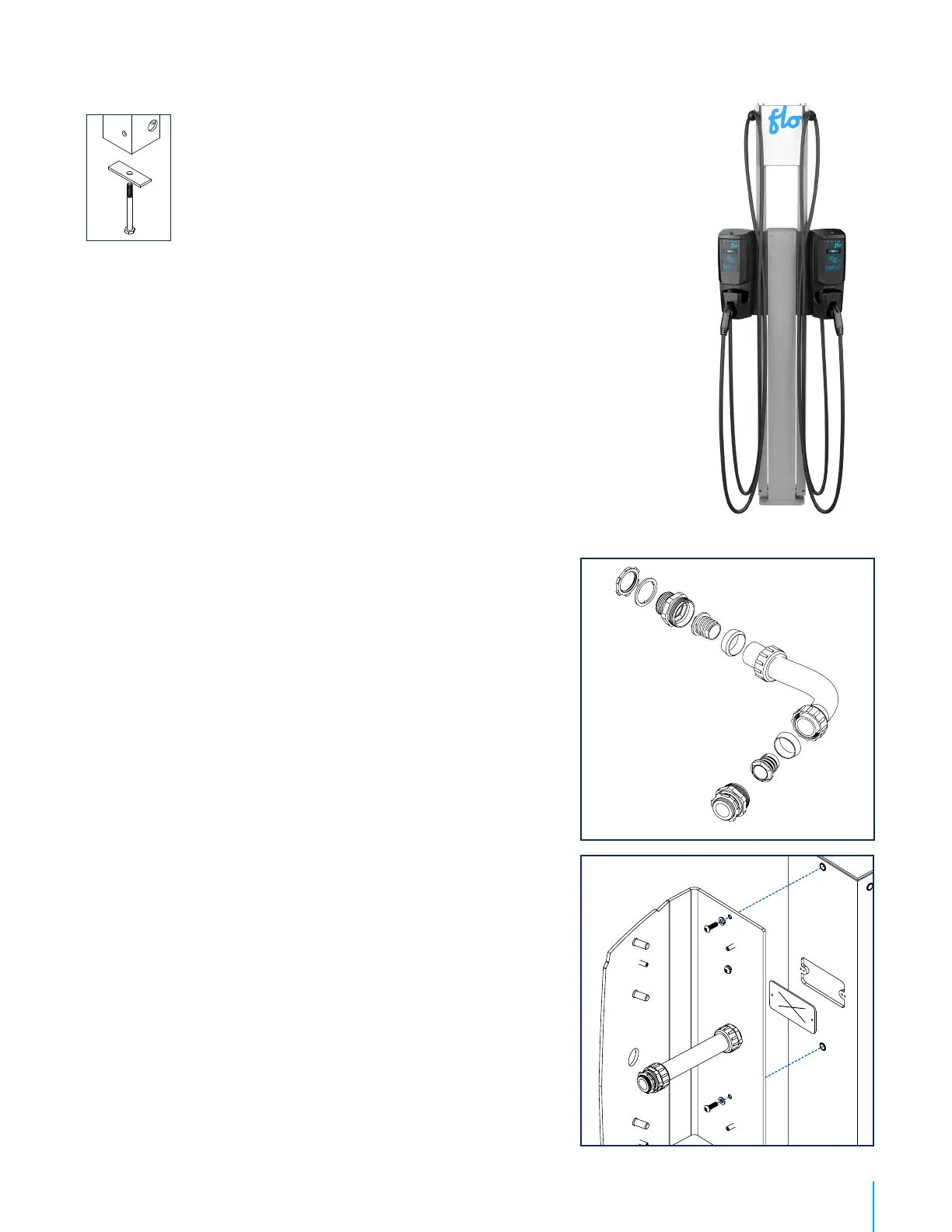 3. Screw the end of the flexible tube to the charging station mount bracket, on