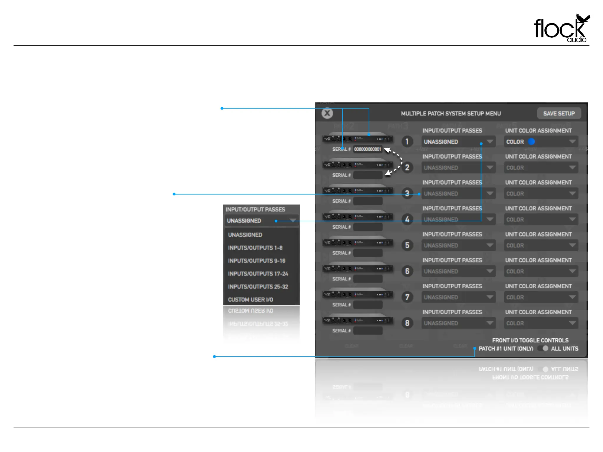 When using a multiple PATCH unit setup(s), users must designate