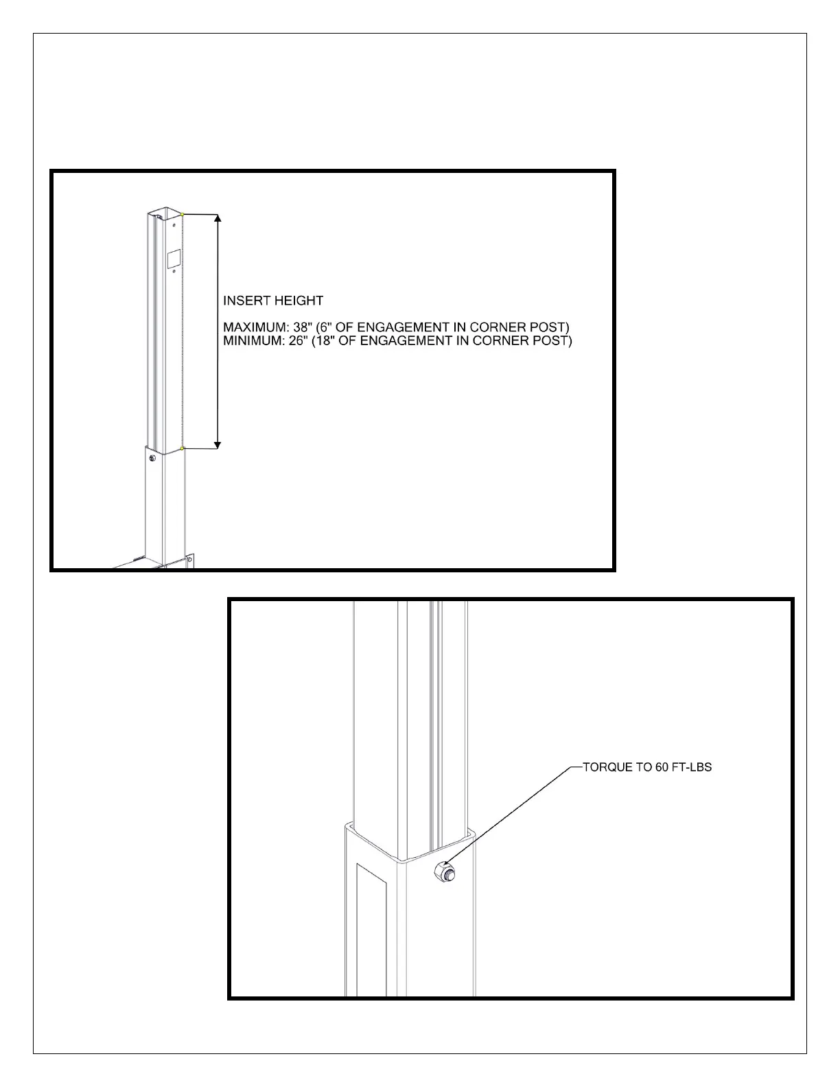 MINIMUM HEIGHT OF THE INSERTS IS 26” (18” OF ENGAGEMENT IN THE CORNER POSTS) (FIGURE