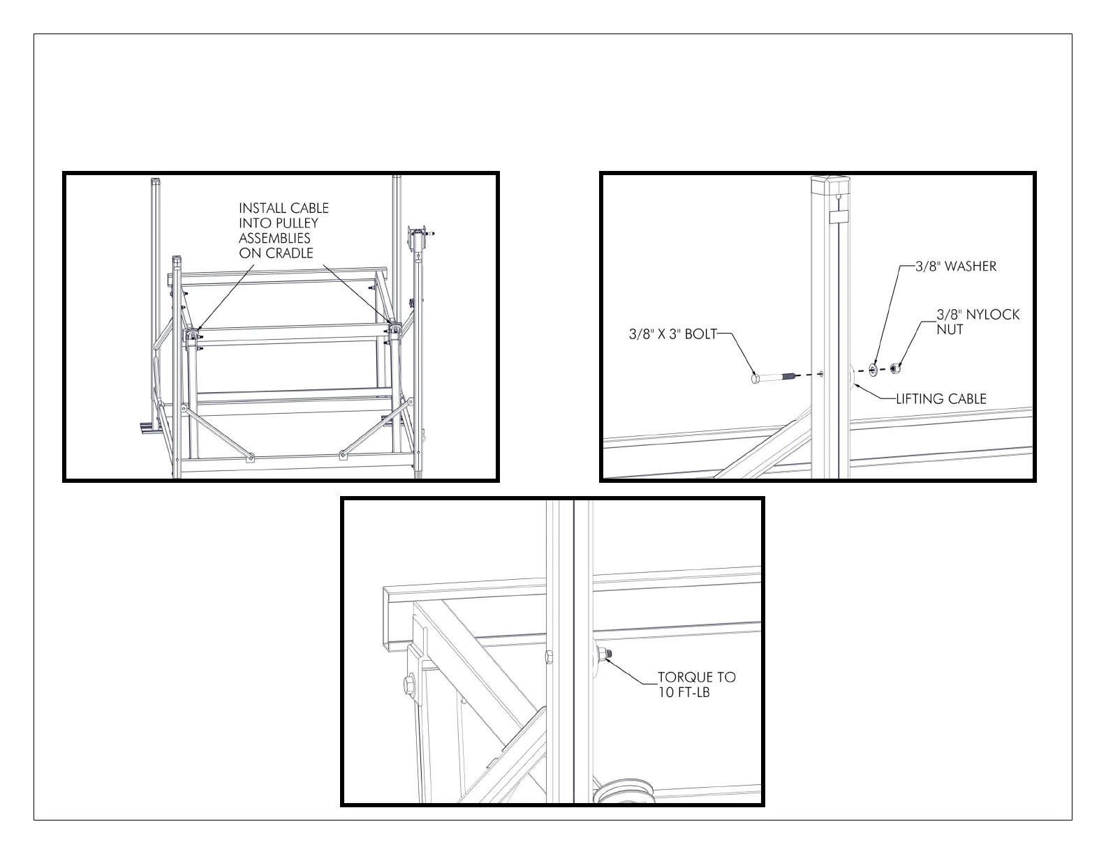 INSTALL THE OTHER END OF THE CABLE THROUGH THE (2) 3” CRADLE PULLEY ASSEMBLIES (FIGURE 4.9).