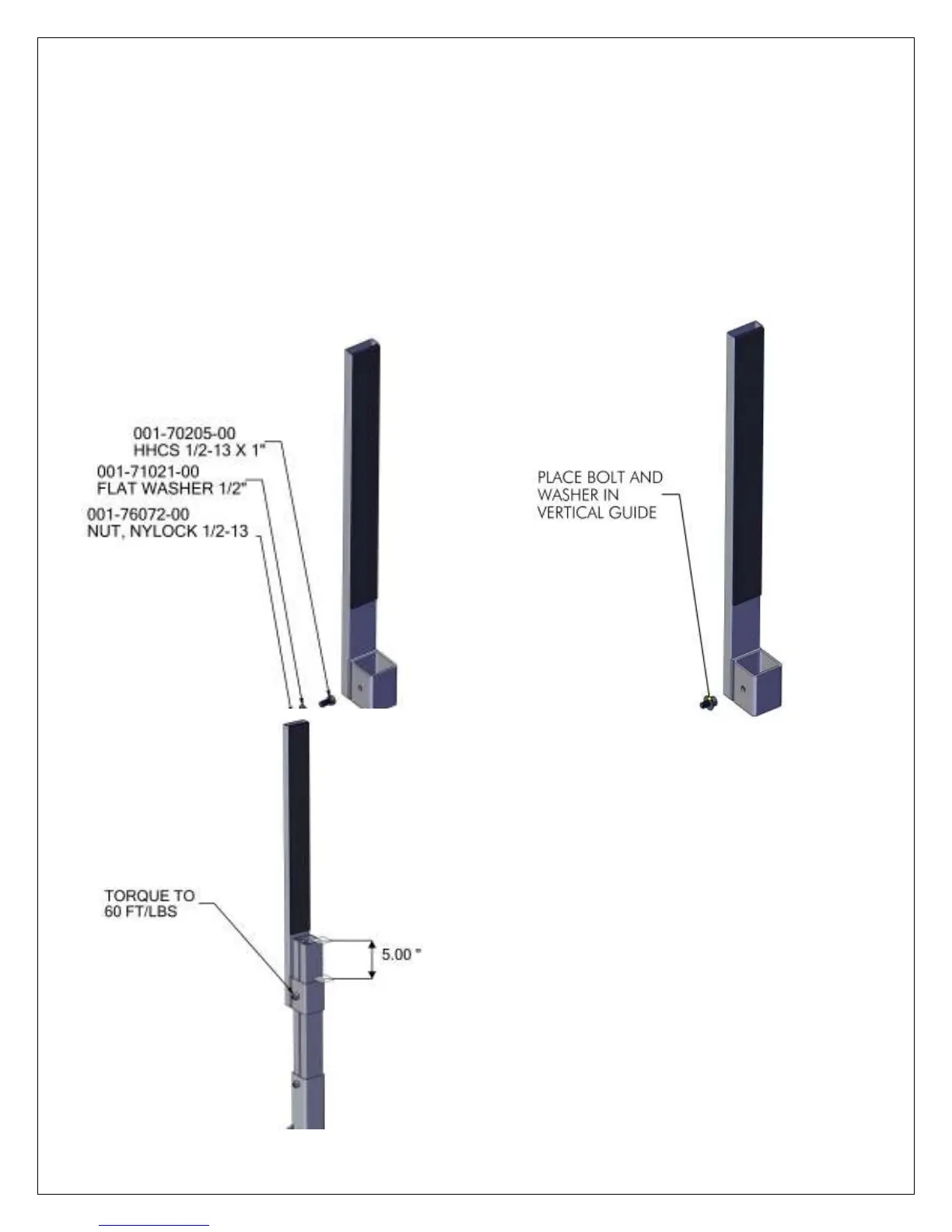 PLACE NUT ON BOLT OVER GUIDE. POSITION THE VERTICAL GUIDE 5 INCHES