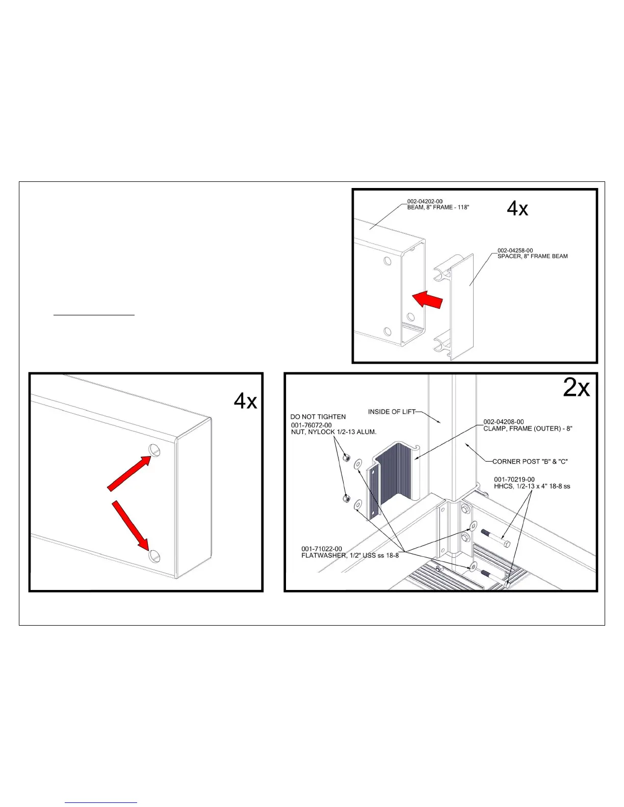 USING OUTER FRAME CLAMPS USING (2) ½” x 4” BOLTS, (4) ½”