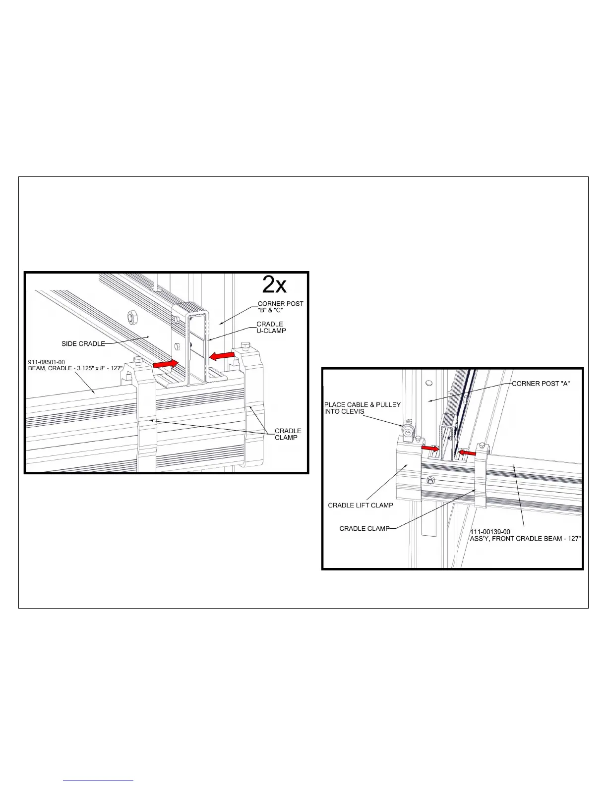 CRADLE BEAMS USING PRE-ASSEMBLED CRADLE CLAMPS