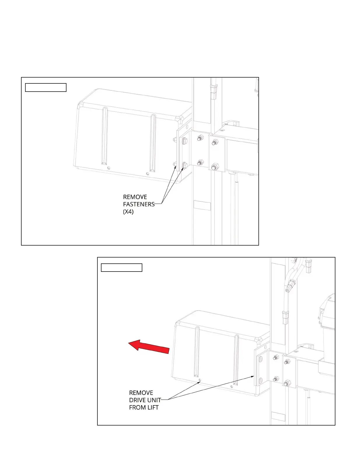 REMOVE THE FASTENERS SECURING THE DRIVE UNIT TO THE BALL SCREW CLAMP (FIGURE 1.3).