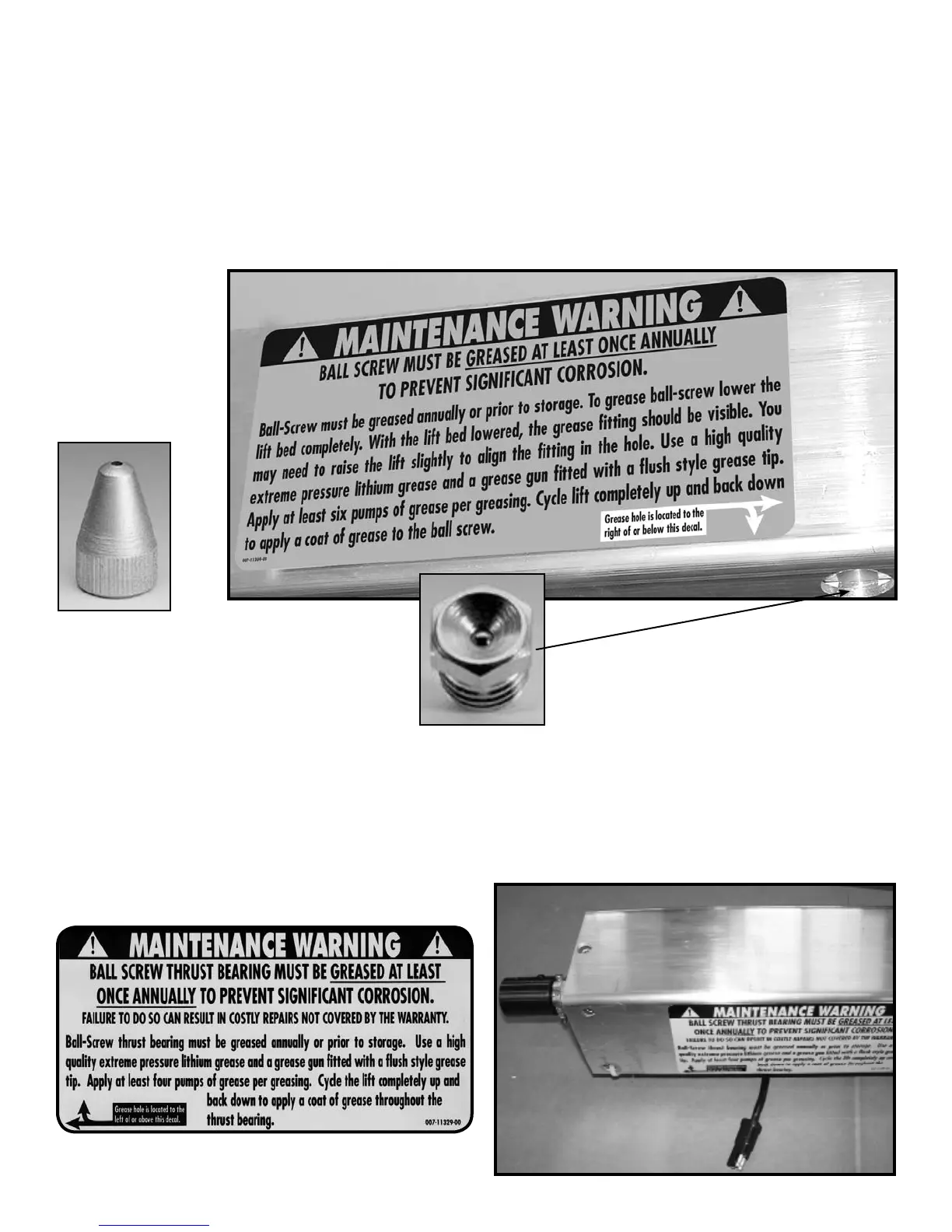 It is important to grease the ball-screw mechanism annually to prevent signicant corrosion. The ball-