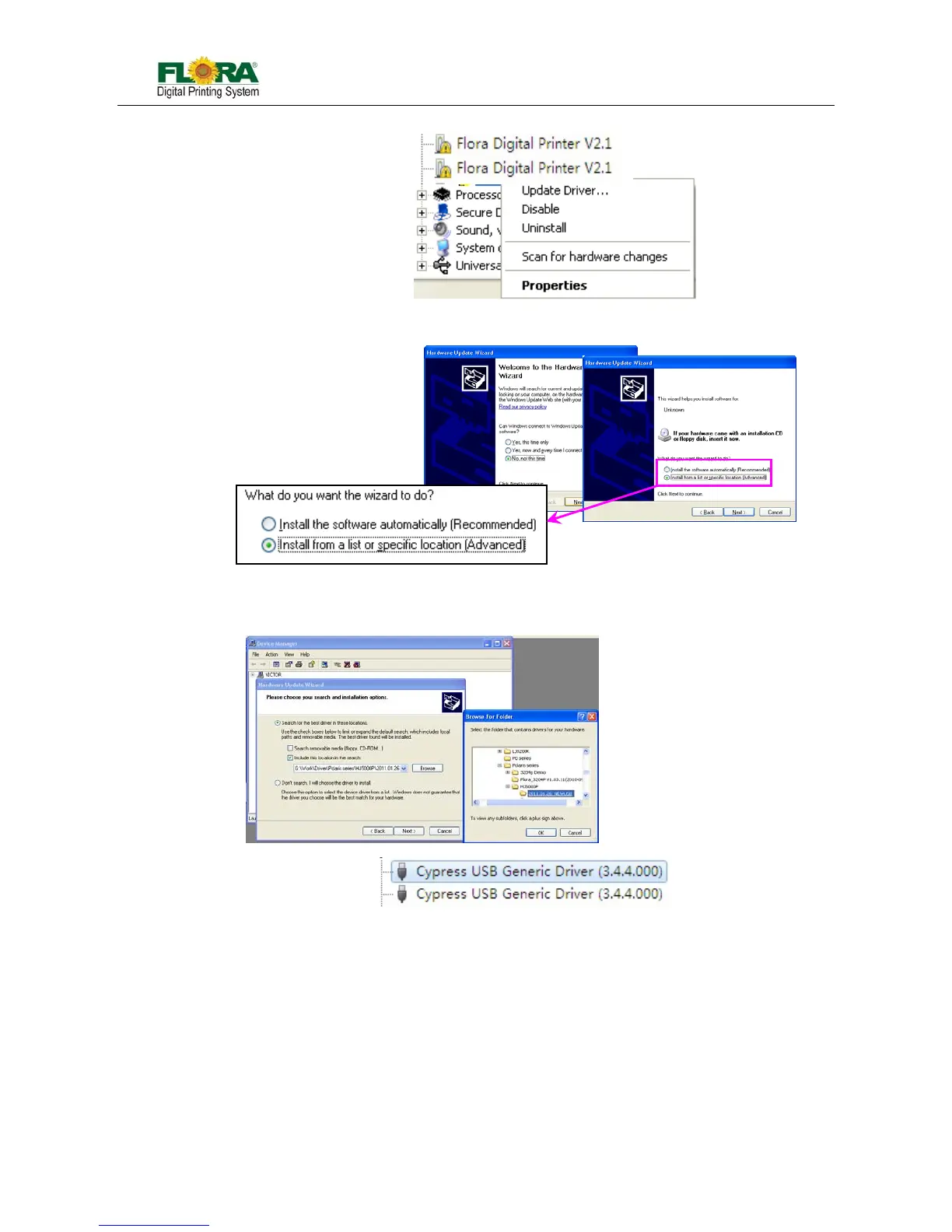 1) Go to Device Manager, you can find that the hardware name Flora Digital Printer V2.1;