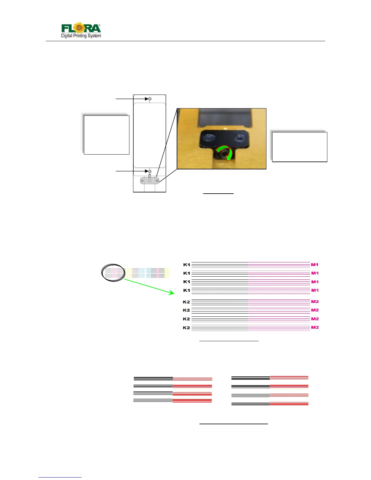 b) Align C, M and Y print heads refer to K print head. The line of C, M or Y should