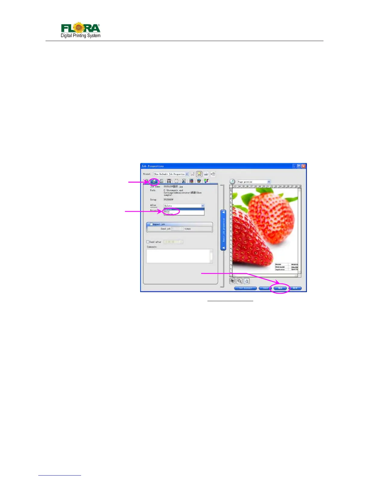 Figure below shows the option what to do with the job file after printing. There are