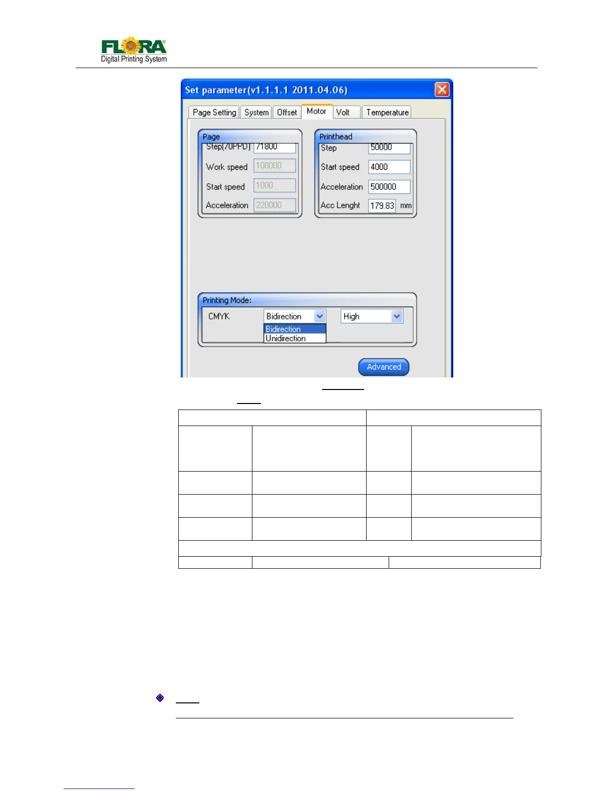 Default job properties → Advanced(Parameter setting) → Motor → Advanced: