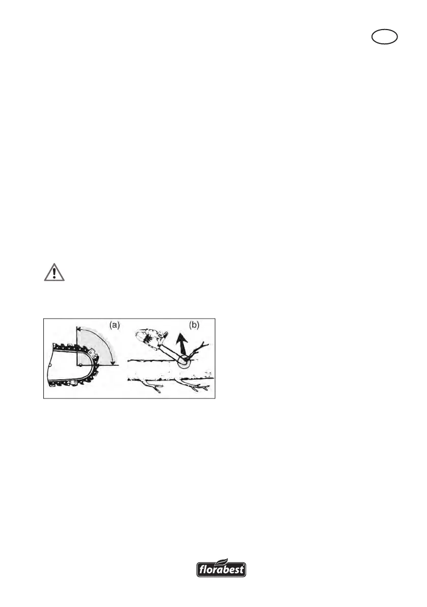 • Het vastzitten van de kettingzaag aan de