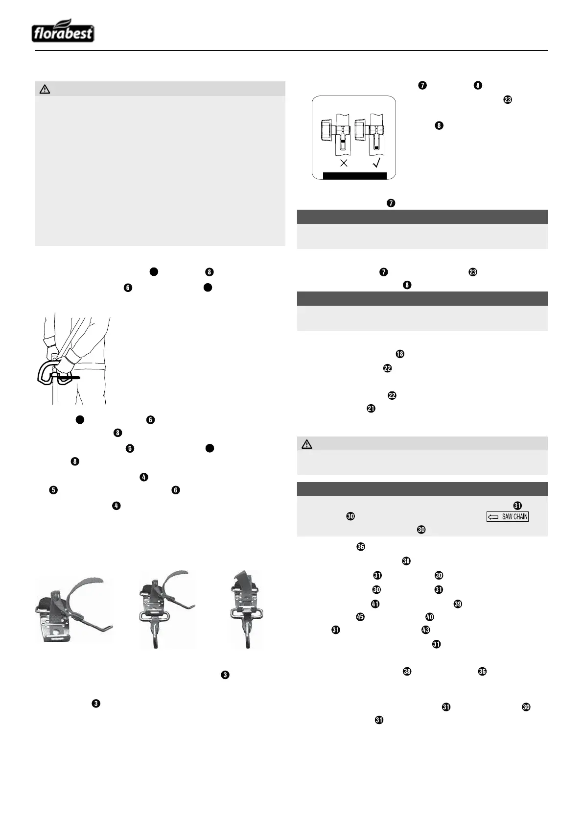 ► Assembly of the pole pruner/strimmer/3-section cutting blade/exten-