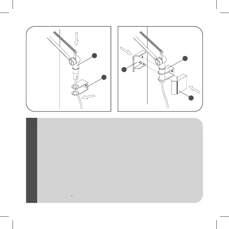 Die Abdeckungen (D) wie in der Abbildung gezeigt in die Wandbefestigung (B) einhngen.